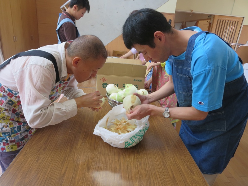 利用者の皆さんも、野菜を切る係や、テントを準備する係などに分かれて担当しました。
