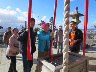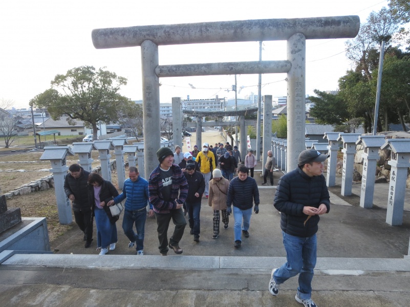 ウインドヒルの利用者はバスに乗って屋島にある大宮八幡宮へ、風見の家の利用者は地元三谷町にある三谷八幡宮へ徒歩で向かいました。